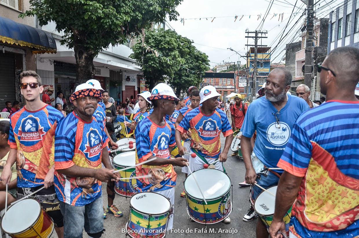 Fundado em 1º de janeiro de 1975 por jovens estudantes do Colégio Severino Vieira — entre eles Vadinho França, também fundador da Unesamba, que reúne os nove blocos de samba da folia baiana —, o Alvorada nasceu no Gravatá e foi responsável por inaugurar a Sexta-feira de Carnaval, abrindo oficialmente o primeiro dia da festa na capital baiana. Seu nome simboliza justamente esse papel: o de anunciar o nascer do Carnaval, o despertar da alegria e da tradição do samba.
